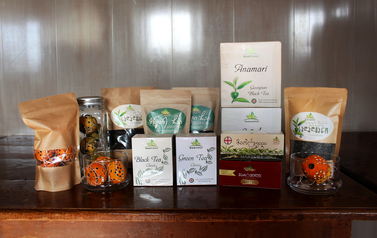 Martvili Tea mainly makes black and green tea, but they also have a small quantity of white tea. The premium quality black tea has the classic taste typical of Georgian blacks, with a mild nutty sweetness, while the premium green is light and pleasant, with mild vegetal notes and hints of fruit. They also create one unique specialty product: tea balls in citrus peel (orange, lemon, or lime). The tea is pressed, similarly to pu'er, and hand-wrapped in the peels. The taste is as expected – a strong brew with citrus notes – but the tea ball is a visually striking novelty, and packs enough tea to brew up to two liters.