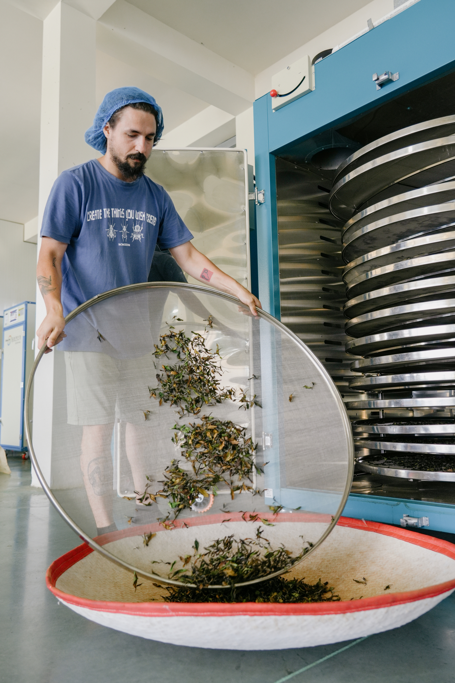 The massive Zemo factory in Zedubani, still only half-completed, is an impressive sight – certainly the largest work of tea infrastructure to be built in Georgia since the Soviet period. While it is fully equipped for the processing and production of their full lineup of teas, the team have even bigger plans for it. With the team expecting to process only four tons of tea or so from their plantations this season, they offer capacity for other farmers to process tea with their state-of-the-art equipment.