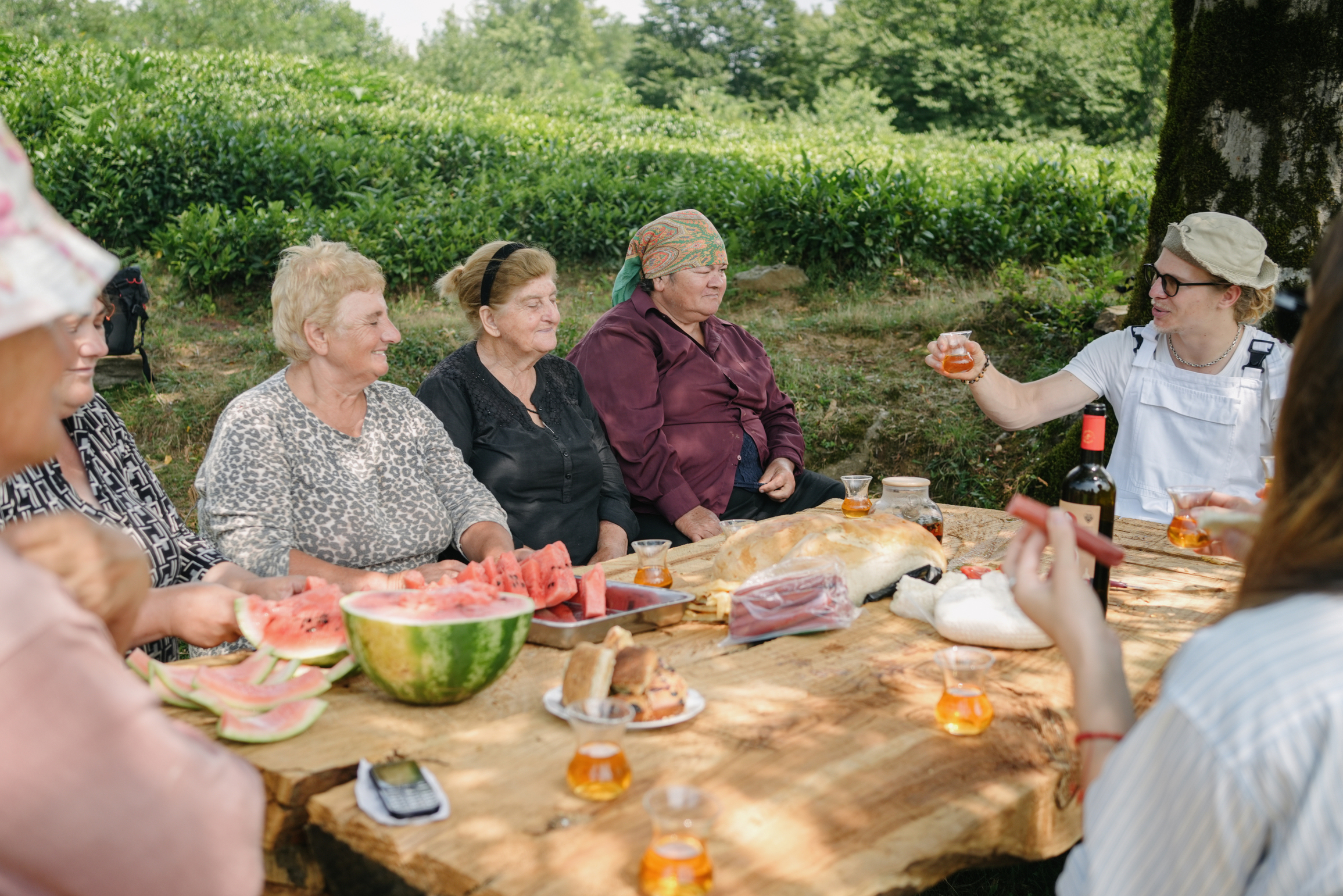 Georgii leads a tea supra with the pluckers