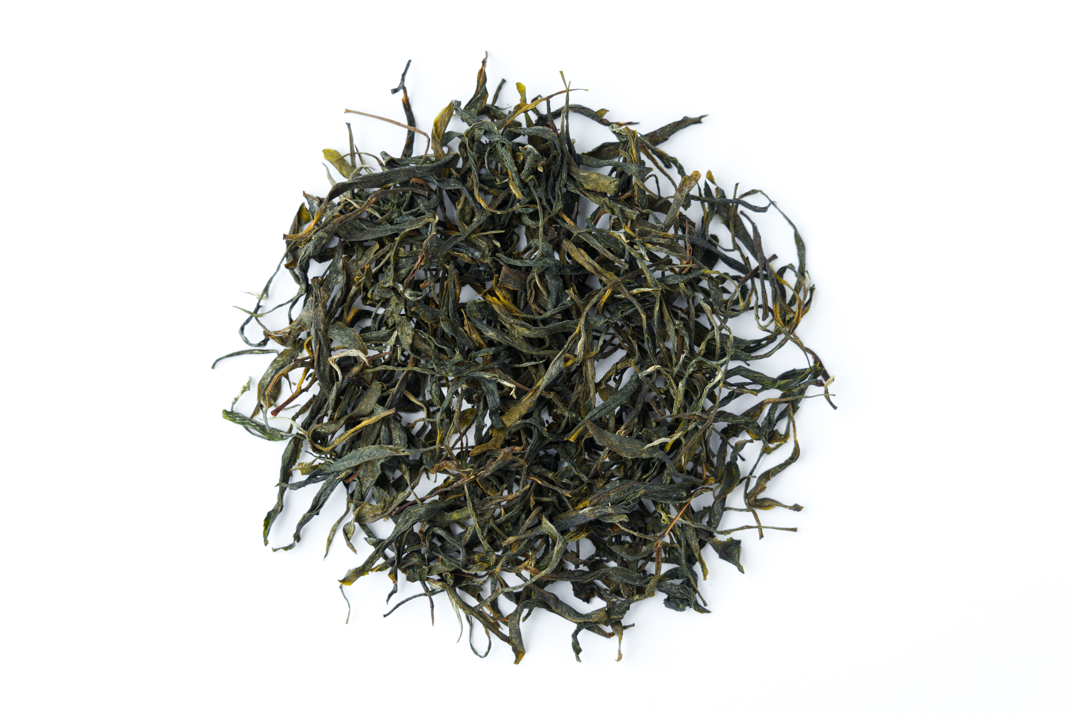 Sun sheng green tea. Sun dried. A bit more fermented than a classic green, with noticeably dark stems. Tastes of sweet herbs and dried fruits.