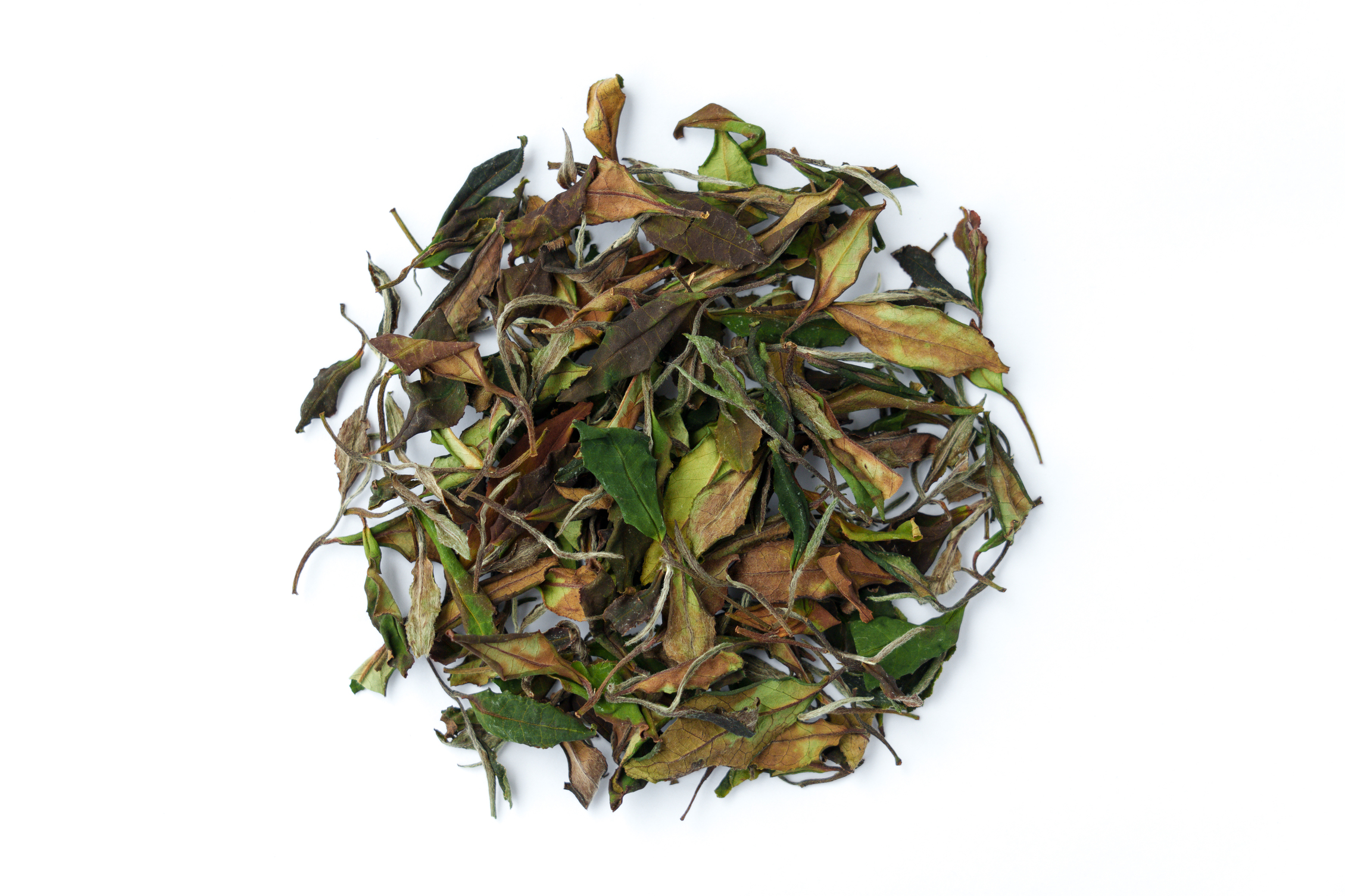 Sun dried white tea. Naturally withered by the wind passing through an outer corridor of the factory. Soft, subtle grassy flavor with a bit of dried fruits. A gently relaxing drink.