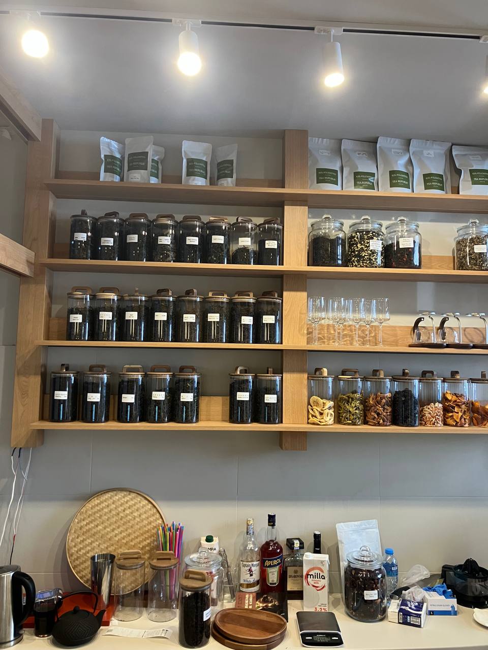 It’s sometimes surprising how few cafes and restaurants in Georgia actually serve Georgian tea, when such a rich heritage exists in the country, not to mention so many world-class producers. Fortunately, I’ve started to notice more and more cafes who are proud to exclusively serve Georgian teas. Pulp, a project by a team from St. Petersburg who relocated to Georgia in 2022, has been a strong supporter of the Georgian tea industry from the beginning, stocking teas from great masters such as Nargiza Ghvinjilia and Shota Kopaliani at their cafe in Vera. Giraffe Home, a new Chughureti startup by a Ukrainian musician and curator, pairs fine Gurian black and green tea with ramen offerings from a Japanese chef, sweet buns from an award-winning Georgian pastry chef, and a tape deck playing a vast collection of old cassettes. And Dopamine Concept, a slick Scandinavian-style spot in the warrens of Sololaki’s back streets, not only serves up excellent black and green tea alongside their sourdough grilled cheese sandwiches and homemade granola, but is also one of the few places in town where you can try blueberry leaf tea.